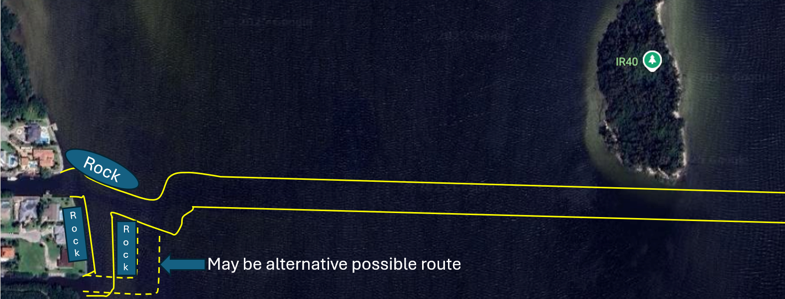 The area from the the end of the map to the intercoastal waterway was seen as not needing dredging.